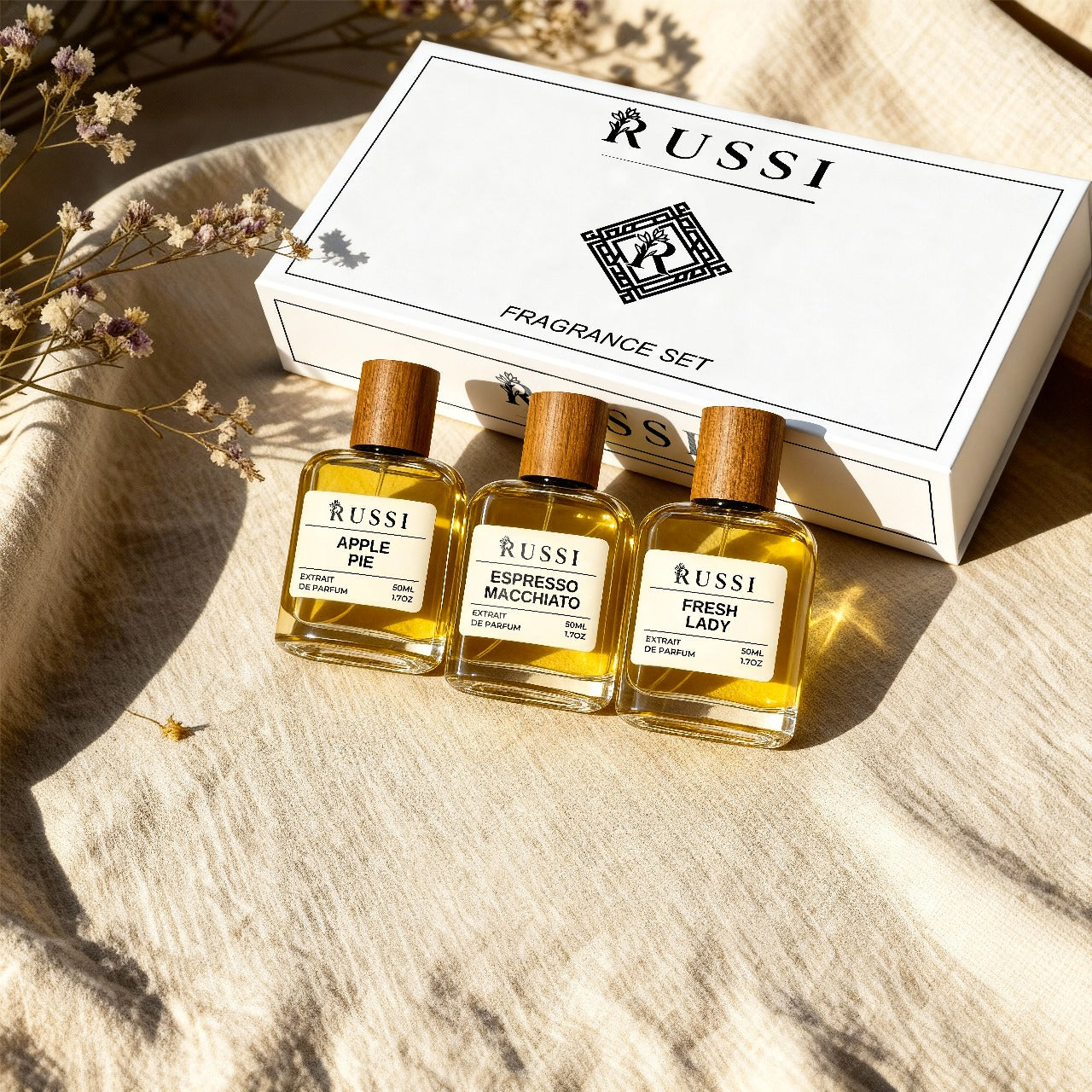 Siltas, saldas un vilinošas aromāts, kas atgādina ābolu pīrāgu ar kanēli, brendiju un karameļu. Komplektā tas nes rudens mājīgumu un saldinātu greznību.