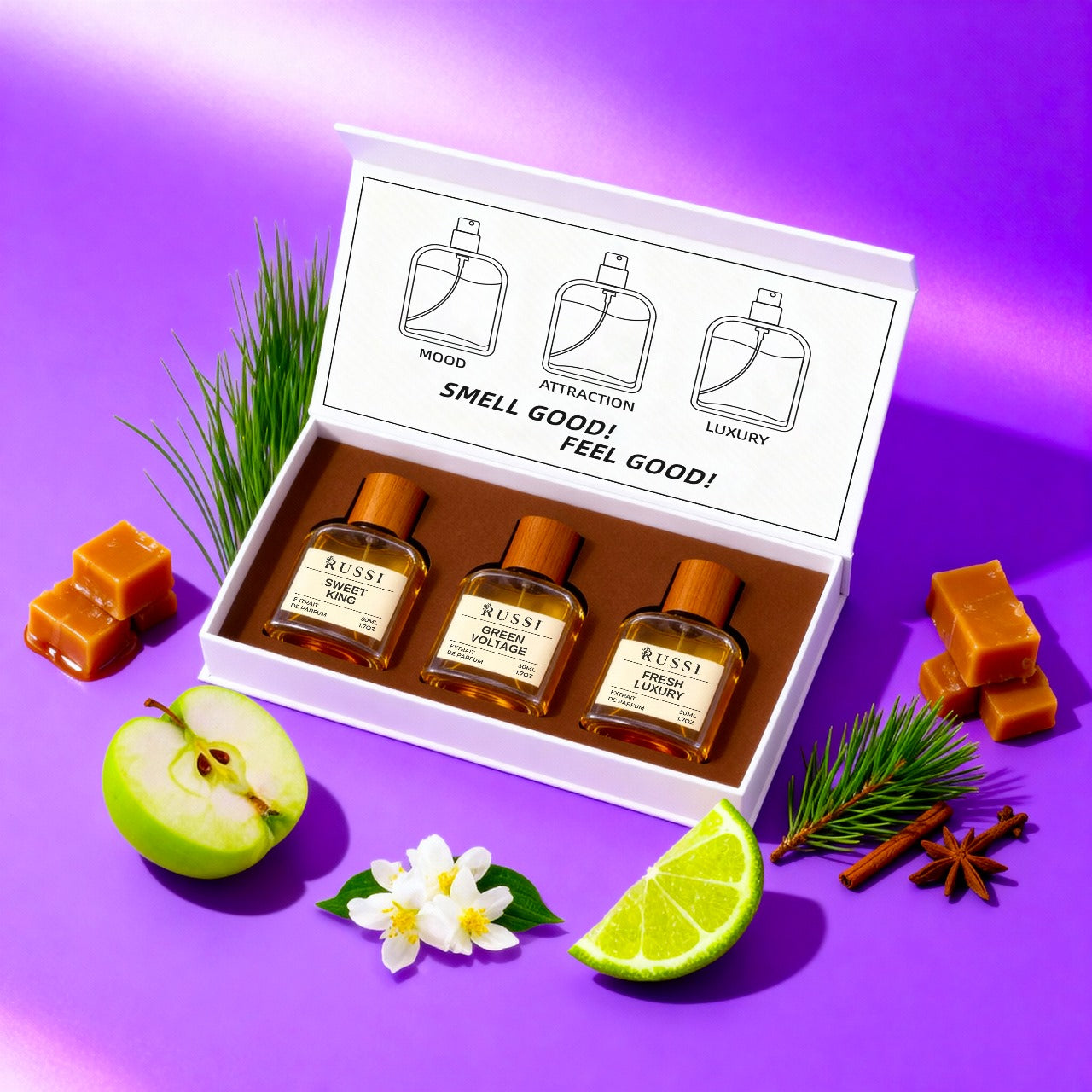 Gaivus, tīrs un rafinēts aromāts, kurā smalki sader citrusi, ziedi un gaiša koks. Rinkinyje viņš pārstāv modernu greznību, lieliski piemērots dienai vai biznesa videi.