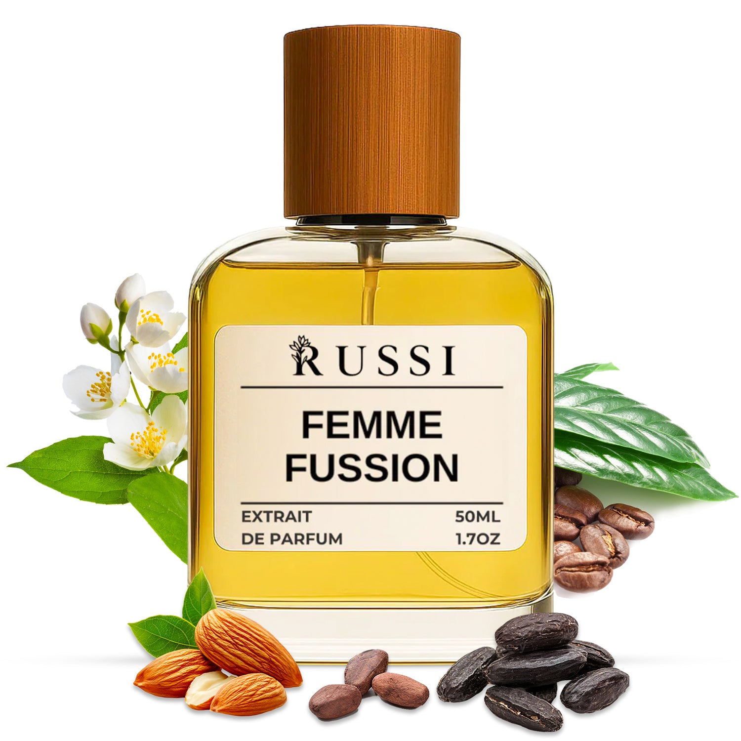 FEMME FUSSION – это соблазнительный, сладкий и элегантный Extrait de Parfum, созданный по мотивам Carolina Herrera Good Girl. Сочетание кофе, тонка-бобов, миндаля и жасмина создает ночную женственность и изысканную тайну.